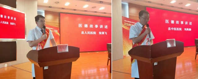 县人民医院张国飞医师、县中医医院刘典勋医师作为医德医风标兵代表进行医德故事讲述。
