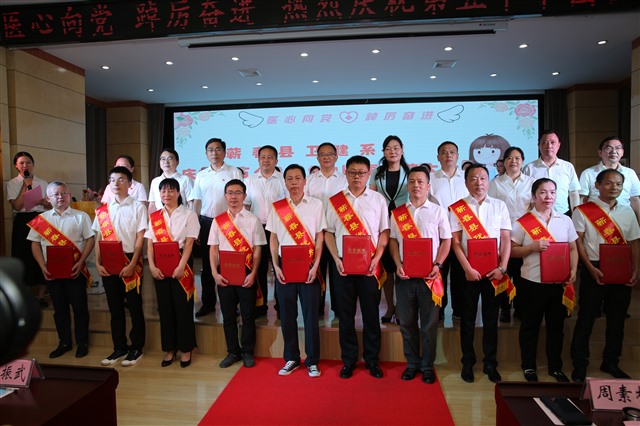 县计生协会会长洪国强宣读《2022年中国医师节“蕲春县优秀医师”的表扬通报》,县领导、县卫健局班子成员为部分优秀医师代表现场颁发荣誉证书。