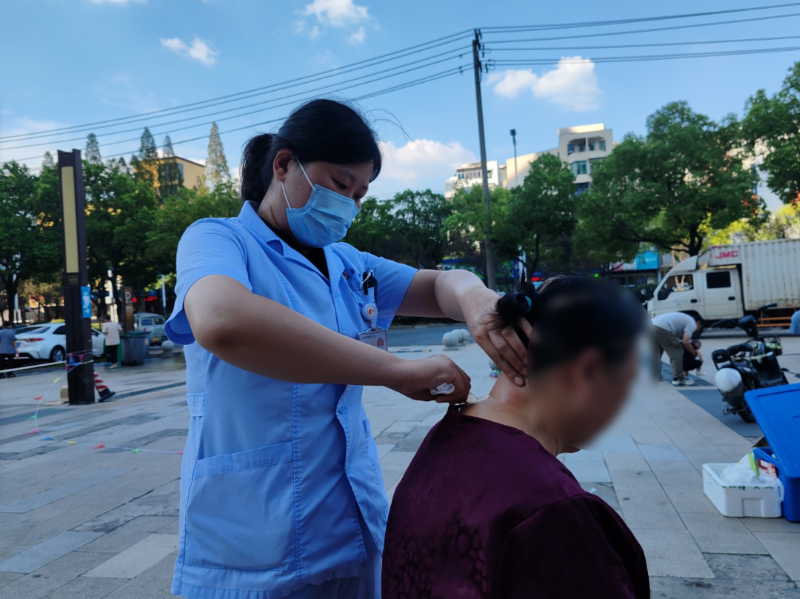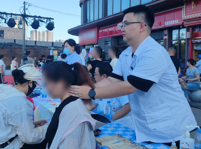 “阿姨,您肩颈这里有点僵硬,我帮您推拿放松放松。”康复医学科潘基伟医师一边说,一边以精准的力度在居民李女士的肩颈穴位上揉按,随着指节起伏,李女士原本紧皱的眉头渐渐舒展,连连称赞手法专业。