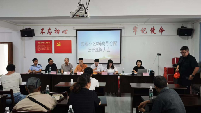 最后与街道联合发布《摇号流程确认书》,28户居民现场签字认可。