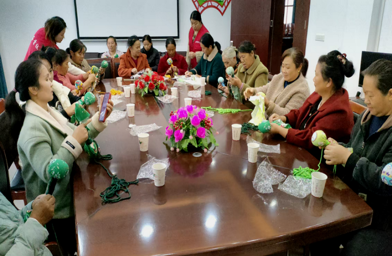 活动中,工作人员详细讲解艾草养生锤的制作方法,妇女们认真聆听、积极动手,从生疏到熟练,一步步完成属于自己的艾草手工作品。大家相互交流技巧,互帮互助,现场欢声笑语不断。