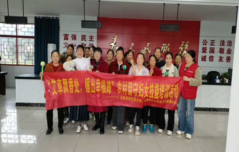 10月20日,石首市妇女联合会、石首市汇心社会工作服务中心的“艾草飘香处,锤出幸福路”农村留守妇女技能培训活动在天鹅洲开发区沙滩子社区顺利开展。