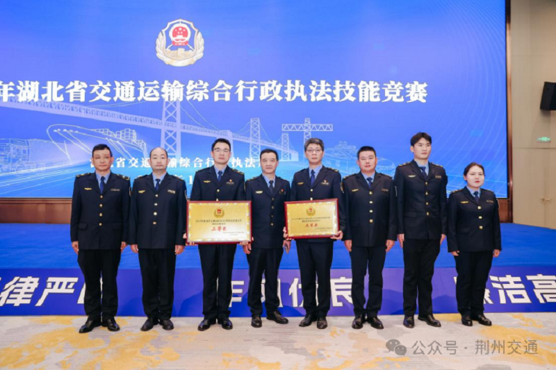 10月31日,2025年湖北省交通运输综合行政执法技能竞赛落幕。荆州市交通运输综合执法代表队斩获总决赛亚军,在多个单项及个人竞赛中表现卓越,获理论竞赛二等奖,执法讲堂优胜奖,模拟案件处置三等奖等多项荣誉。