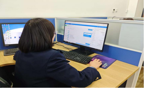 图为征纳互动坐席人员为纳税人线上办理业务