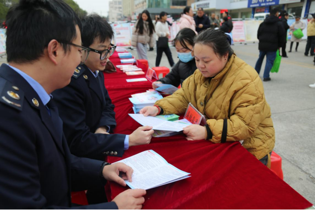 活动现场,嘉鱼县税务局精心设立税务普法宣传专区,税务干部化身“普法宣传员”,围绕宪法核心精神、税收法定原则及纳税人权利义务等内容,结合贴近实际的法治典型案例,用通俗易懂的语言开展现场宣讲,让抽象的法律条文变得生动可感。针对纳税人缴费人普遍关注的社保费缴纳问题、发票申报实操流程、权益保障途径等热点诉求,税务干部一对一精准辅导、面对面答疑解惑,切实把疑难问题讲清楚、把办税流程说明白、把权益保障讲透彻。同时,通过发放宪法读本、税法政策汇编等宣传资料,进一步拓宽普法覆盖面,让群众在潜移默化中增强法治观念和依法诚信纳税意识。