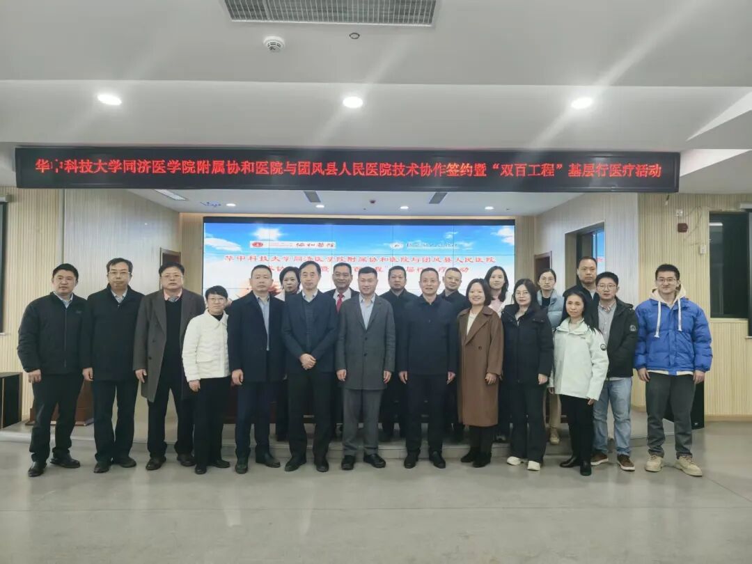 2025年12月12日上午10时,华中科技大学同济医学院附属协和医院(以下简称“武汉协和医院”)与团风县人民医院技术协作签约仪式暨“双百工程”基层行医疗活动,在团风县人民医院九楼会议室顺利举行。此次合作既是武汉协和医院推动优质医疗资源下沉的具体实践,也为团风县卫生健康事业发展注入新动能。