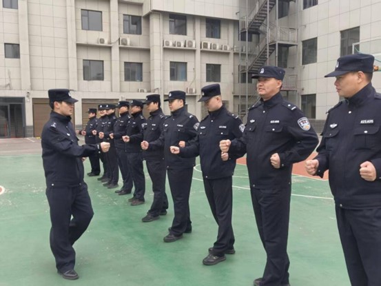 技能为要,擒敌拳法砺精兵。紧随其后的是擒敌拳训练环节。训练场上,“哈”声阵阵,气势如虹。从分解动作的精准讲解到连贯套路的迅猛演练,干警们目光如炬,拳脚带风,一招一式力求标准到位。这一传统警务技能的训练,不仅有效提升了干警的单体控制与应急处置能力,更在模拟对抗中强化了协同配合意识,为日常安检、值庭、协助执行等警务工作夯实了安全根基。