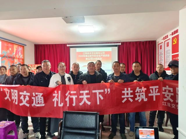 为深入落实交通运输部安全生产重大风险隐患排查整治要求及县级2026年春运春节道路运输会议部署,顺利实现“平安春运、便捷春运、温馨春运”三大目标,近日,江陵县天宇出租汽车客运有限责任公司组织全体驾驶从业人员,召开春运春节安全生产培训会,邀请行业主管部门及交警部门工作人员到会指导、宣讲安全知识。