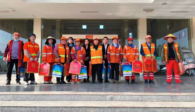 现场向武穴城东和城西两个片区环卫工人赠送春联礼包200份,发放消保宣传手册、单页400余份,并附赠了农行抽纸、纸杯、打火机和围裙等礼品。