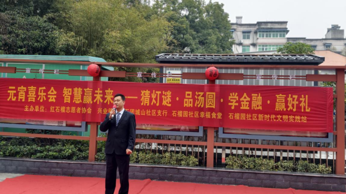 为弘扬中华优秀传统文化,丰富社区居民精神文化生活,提升居民金融素养与风险防范意识,2026年3月3日上午,兴业银行黄石团城山社区支行联合黄石团城山街道石榴园社区,成功举办“元宵喜乐会 智慧赢未来”主题元宵节活动。活动将猜灯谜、品汤圆等传统民俗与金融知识宣传、反诈教育深度融合,吸引众多社区居民热情参与,收获良好社会反响。