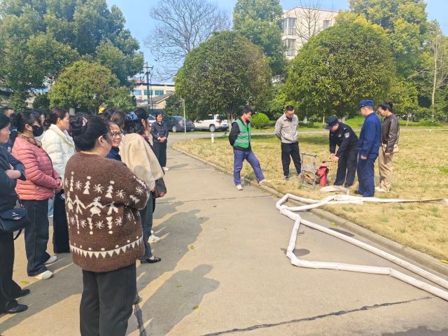 实操教学强技能,手把手教懂会用。实操环节中,消防队员现场演示灭火器、消防水带等器材规范操作流程,详细讲解使用要点与协同配合技巧,并邀请员工上手实操。在民警与消防队员专业指导下,参训人员逐一练习,熟练掌握器材使用方法与初期火灾扑救技巧,分组开展模拟灭火操作,切实将理论知识转化为实操能力。
