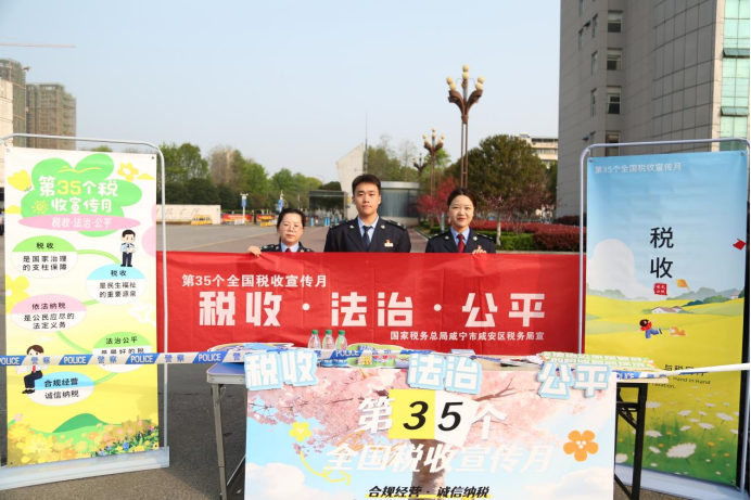 春风和煦,万物竞发。正值第35个全国税收宣传月开展之际,为持续扩大税收宣传覆盖面和影响力,咸安区税务局将税收宣传阵地“搬”到了激情澎湃的马拉松赛场边,实现了税收宣传与全民健身的有机融合,为火热的赛事增添了一抹亮丽的“税务蓝”。