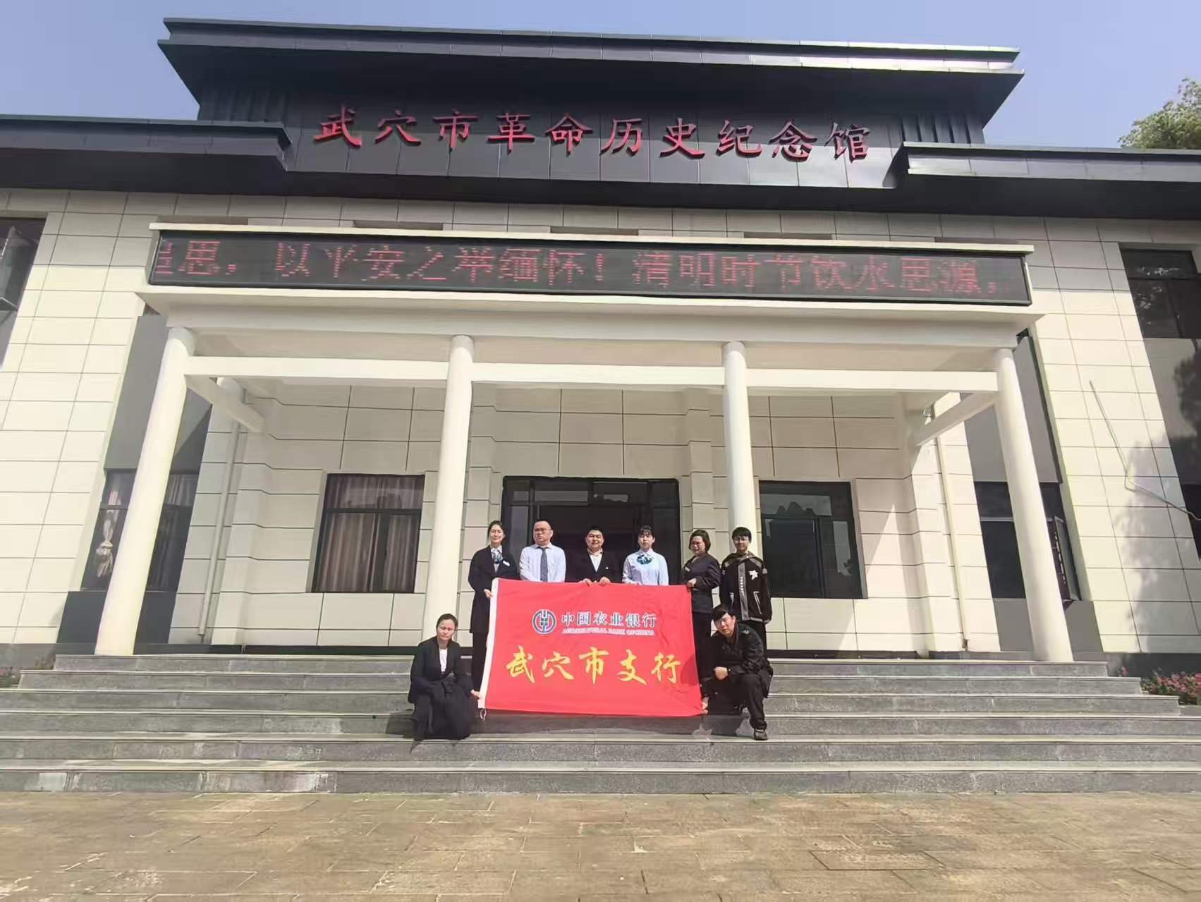 武穴农行永宁支行毗邻武穴市革命烈士陵园,永宁支行将用好身边红色资源,把每年开展清明祭英烈活动作为作为一项爱国主义教育工作持续接力传承开展下去。以实际行动赓续红色血脉,铭记英烈事迹,扎实推进和践行正确政绩观学习教育,汇聚不畏艰难、勇往直前的奋进力量,把缅怀之情转化为干事创业的强大动力,立足金融岗位,坚守初心使命,履职尽责、担当作为,为深化银保合作,以更坚定的信念,更务实的作风和更优质的服务,为十五五开局和农行高质量发展贡献更多更好的基层农行网点力量。