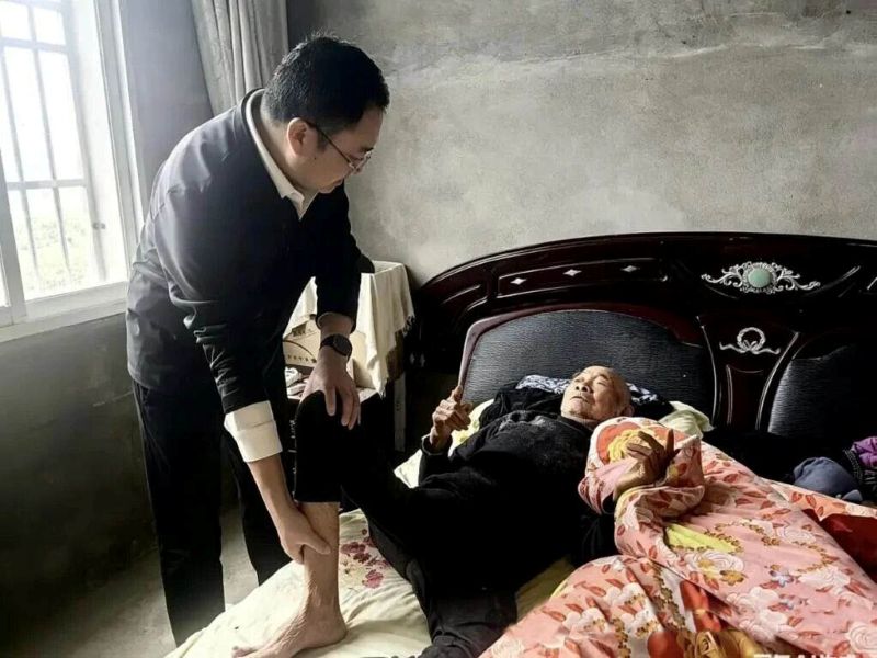 尤其温暖的是,针对行动不便的居民,医护团队主动送医上门。荆州三医院长盛斌专程参与走访,在群众家中详细询问健康状况与实际困难,为长期卧床的老人进行细致检查并轻柔按摩,同时叮嘱家属科学照护要点,以专业的医疗服务和真诚的人文关怀,拉近了与群众的距离。