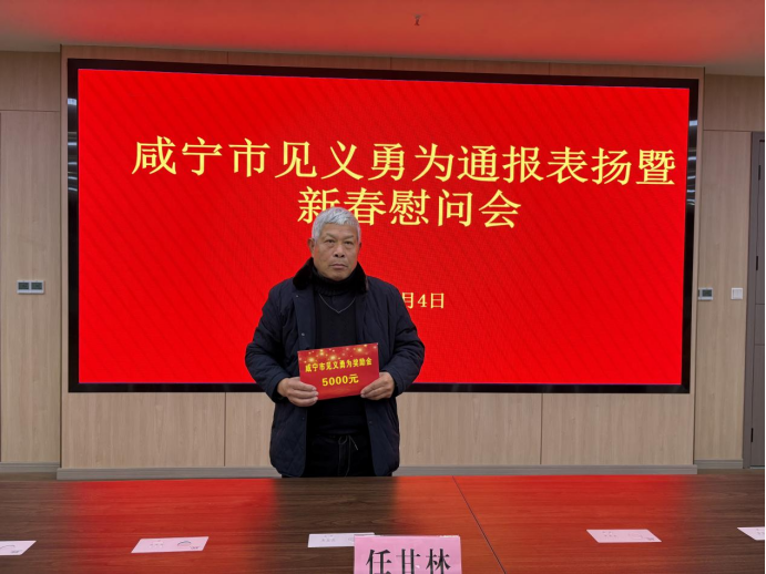 2025年7月17日,赤壁市在赤马港街道大桥社区举行表彰会,赤壁市委常委、市委政法委书记王辉向任甘林颁发“赤壁市见义勇为先进个人”证书及奖励金,并号召社会各界以先进为榜样,加强防溺水教育,用点滴善举汇聚城市正能量。
