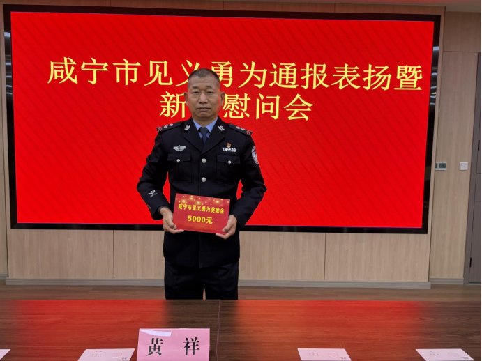2026年2月4日,赤壁市新店派出所辅警黄祥获咸宁市见义勇为表扬。