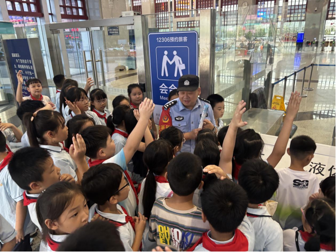 为确保活动取得实效,赤壁北站派出所联合赤壁北站、赤壁市外国语学校提前谋划,结合赤壁北站实际运营场景与中小学生的认知特点,制定了专项“实景化教学活动实施方案”。活动内容紧扣铁路安全核心,既涵盖铁路安检基础知识、检票进站流程、候车与站台安全常识等实用内容,又聚焦铁路安全法规和“爱路护路八个严禁”等重点要求,通过案例讲解、现场演示、发放宣传单、互动问答等多种形式,取代传统说教,让铁路安全知识更加生动易懂。
