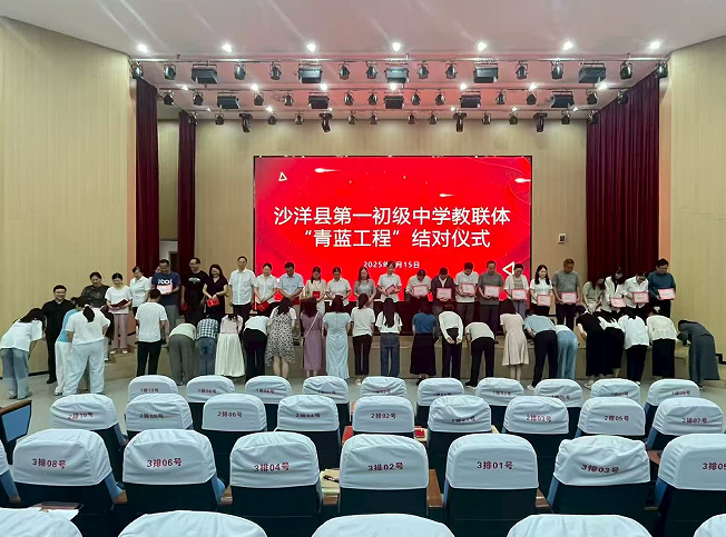 9月15日,荆门市沙洋县第一初级中学教联体隆重举行"青蓝工程"新教师师徒结对仪式。本次活动旨在充分发挥优秀骨干教师的传、帮、带作用,促进新教师快速适应教学岗位,提升专业能力,打造一支师德高尚、业务精湛的教师队伍。