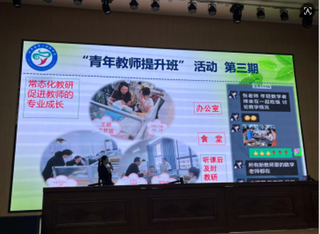 三是校长殷切寄语 。活动最后,秦荣校长作了鼓舞人心的总结讲话。他肯定了八位青年教师的探索精神,要求全体青年教师将学生核心素养的培养放在首位,在学科教学中渗透正确的价值观,激发孩子的潜能。他希望大家常怀感恩之心,珍惜学校搭建的成长平台,将个人发展与集体进步融为一体。最后,秦校长以 "坚持"二字寄语未来,鼓励青年老师坚持每日反思工作、思想与教学方法,在持续的学习中积淀教育智慧,获得长远发展。秦校长的讲话让大家更加坚信:在这个变革的时代,教育不是灌输,是点燃;不是约束,是释放;不是重复,是创造。