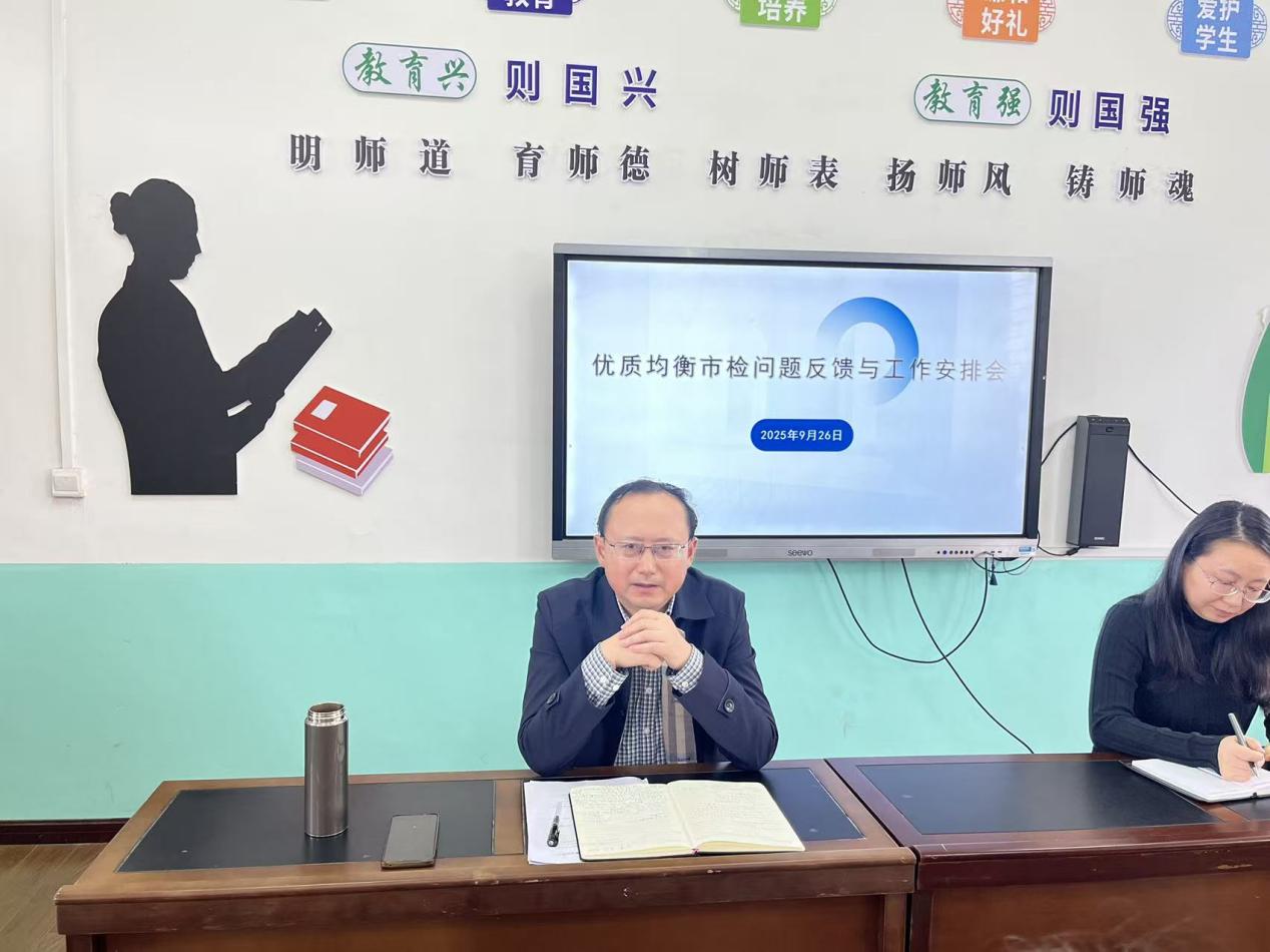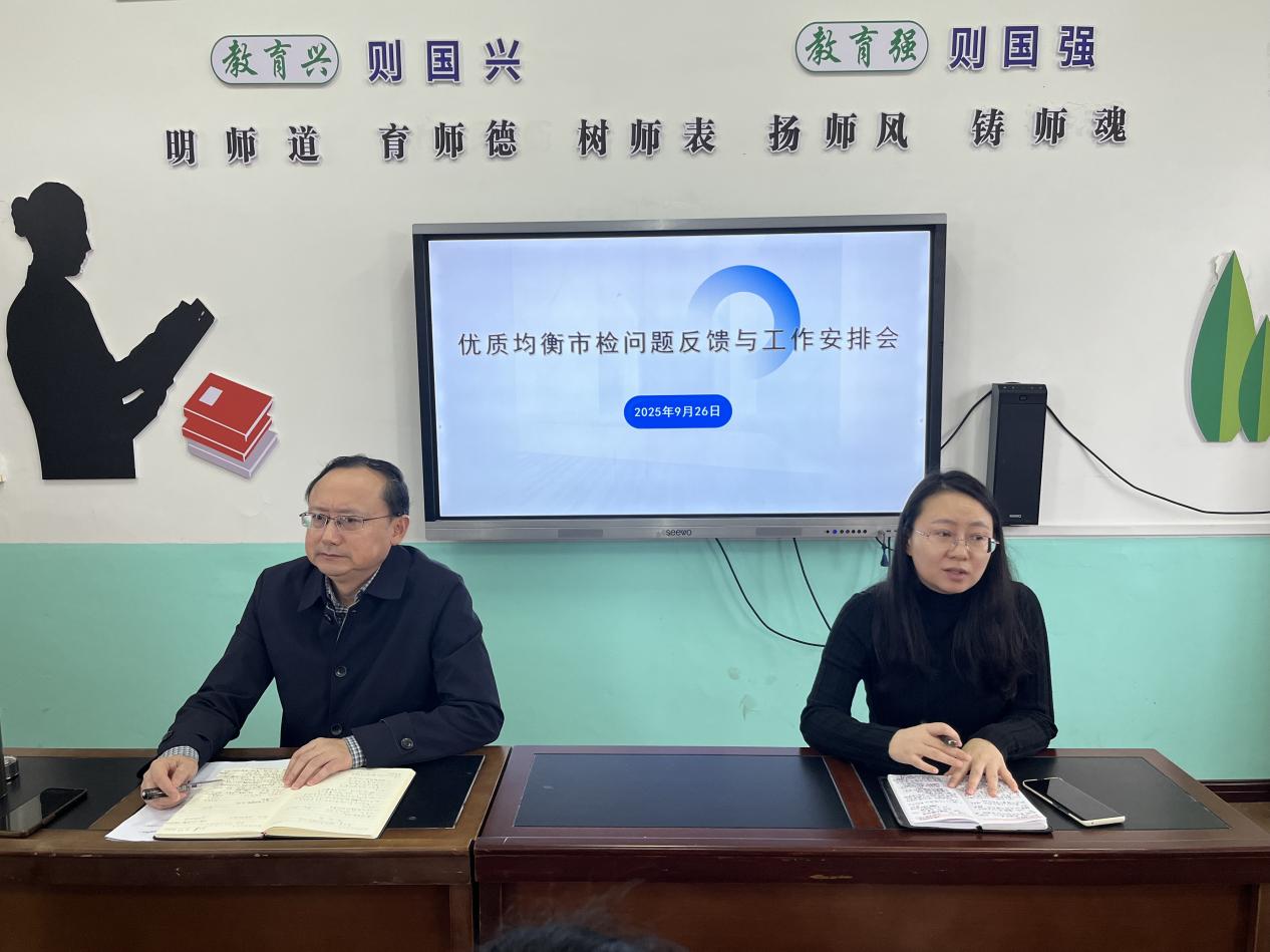 为进一步推进优质均衡创建工作,做好教育教学相关迎检工作,9月26日上午,2025年秋季学期湖北荆门沙洋县优质均衡市检问题反馈与工作安排会议在曾集镇中心小学召开。沙洋县教育局副局长李勇、教育局副主任督学杜睿、基础教育股股长马于洪、曾集教育总支干事李雄、各镇基教辅导员及各中小学教学副校长参会。