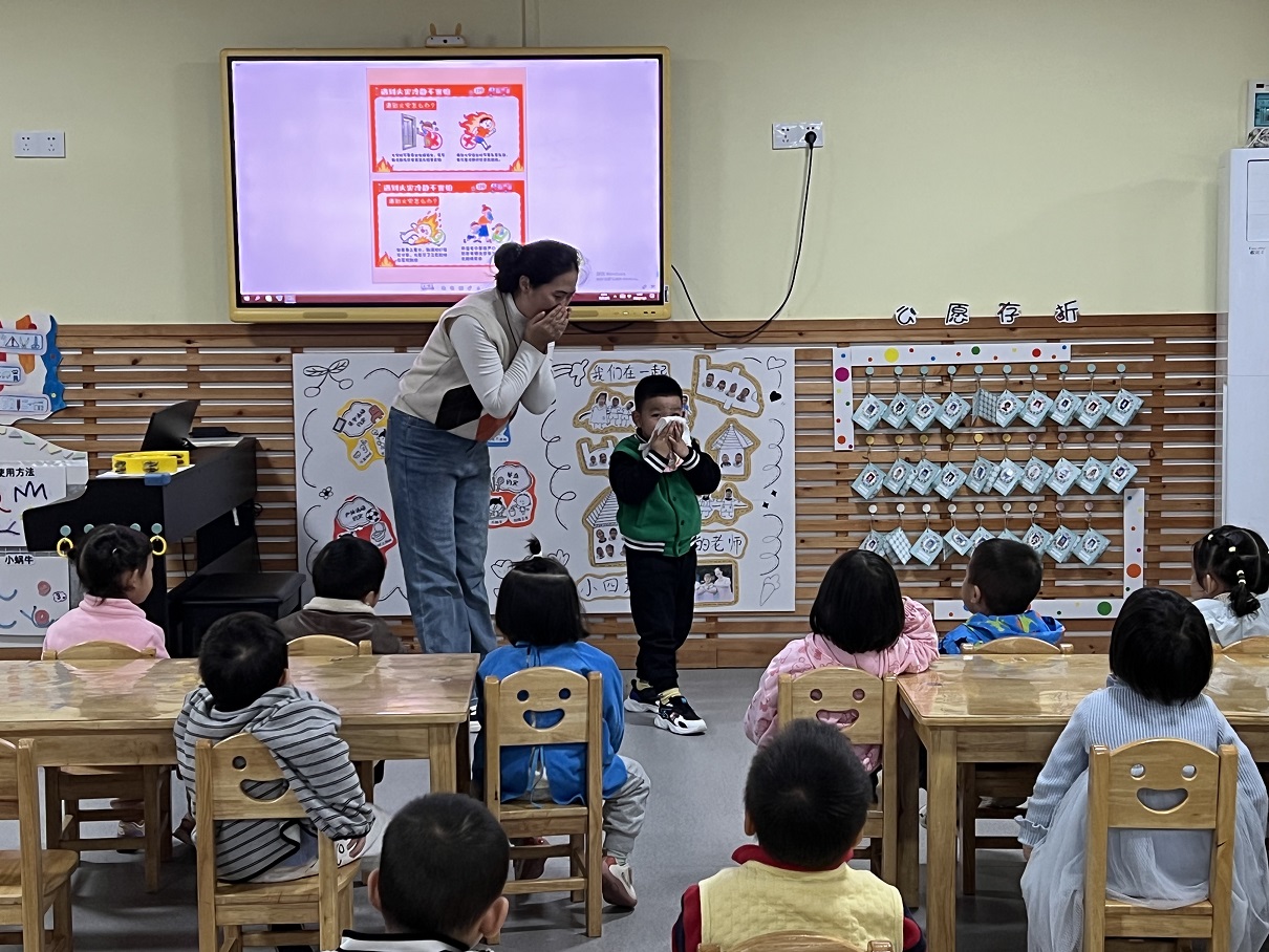 11月4日上午,消防警报响起,全园幼儿在教师引导下用湿毛巾捂住口鼻、弯腰低姿沿疏散路线撤离,仅用1分48秒完成集结。消防员现场点评:“孩子们行动迅速有序,为高效逃生争取了关键时间。” 趣味科普:童言童语学安全