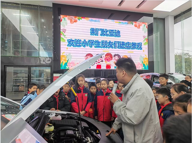 为了让少年儿童零距离感受科技魅力,筑牢科技创新理想根基,11月17日上午,湖北荆门市石化第一小学组织优秀少先队员走进比亚迪新能源汽车4S店,开展了"走进比亚迪 点燃科技梦"主题实践活动。