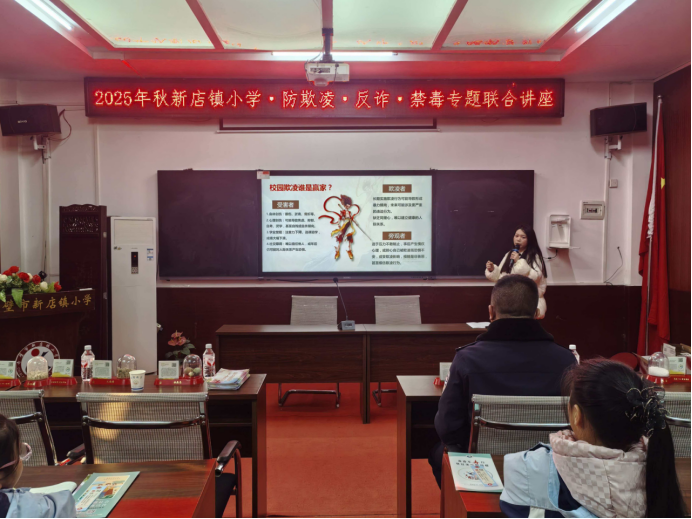 12月9日上午,赤壁市新店司法所会同新店派出所、社区戒毒康复中心走进新店小学,联合开展防欺凌、反诈、禁毒专题联合讲座。