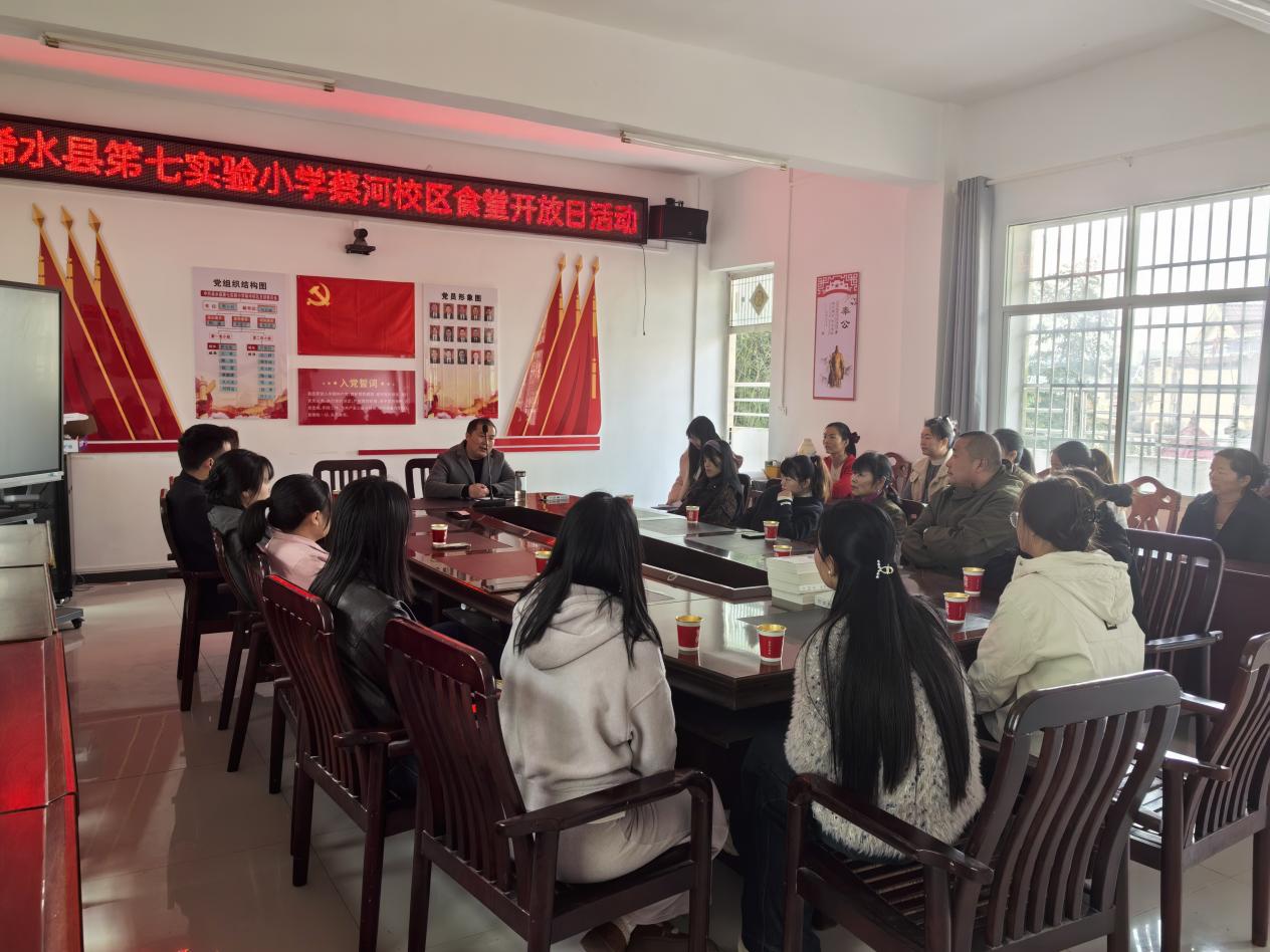 为进一步强化校园食品安全管理,增进家长对学校食堂工作的了解与信任,搭建家校沟通的桥梁,日前,浠水县第七实验小学蔡河校区成功举办了"食堂开放日"活动。家长代表走进校园,深入食堂,"零距离"观摩学生餐食的制作全过程,亲身感受学校在食品安全与学生营养健康方面所做的努力。