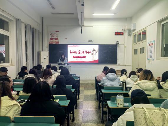 学校以"宪法宣传周"为契机,多维度深化宪法法律学习。一方面,组织2025级全体新生召开"宪法宣传"主题班会,普及宪法知识,提升青年学子的法治意识和法律素养。另一方面,特邀重庆市人民检察院三级高级检察官潘基俊、北京海文律师事务所著名律师蓝洁为法学专业学生作专题报告,以深厚的理论功底和丰富的实务经验,为学生带来前沿的法治思想与实践洞察,拓宽了专业视野。