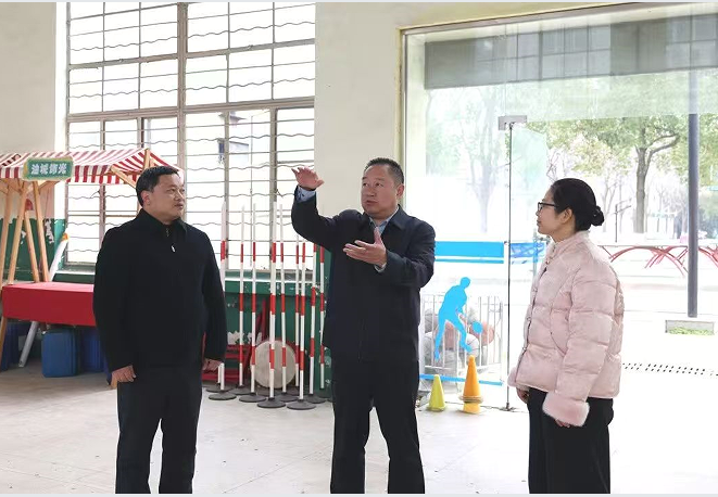 苏强一行实地查看了校园环境、学校基础设施以及体育器材室等,详细了解了器材配备、使用管理及安全保障情况。调研过程中,苏局长还与年轻教师们进行了亲切交流,询问了他们的备课情况、教学适应度以及工作生活中的需求,勉励他们潜心教学,快速成长。