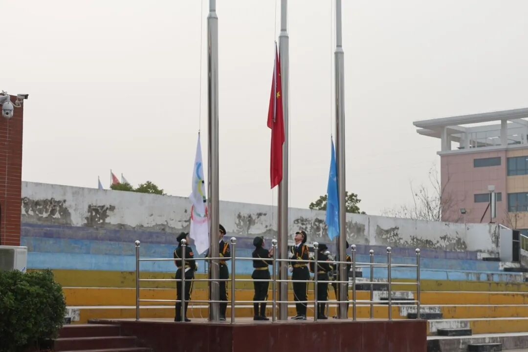 晨光熹微,风展红旗如画。伴随着雄壮的《义勇军进行曲》,鲜艳的五星红旗冉冉升起,全体师生肃立注目,高唱国歌。铿锵的旋律中,爱国情怀与新学期的昂扬斗志在每个人心中激荡,为新学期注入了坚定的精神力量。