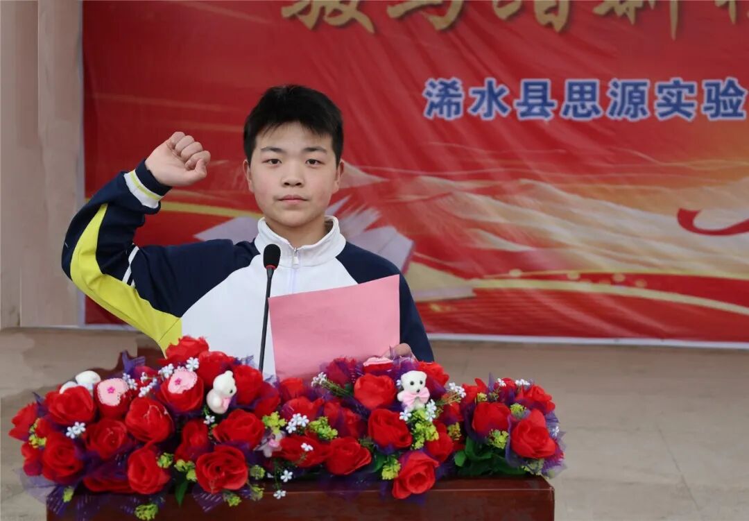 大会临近尾声,在八12)班王一钊同学的领誓下,全体学生举起右拳,庄严宣誓。“不负时代,不负韶华”的誓言铿锵有力,响彻运动场的每一个角落,彰显了思源学子不负时代、不负韶华的坚定决心,也为新学期的奋斗征程注入了强大动力。