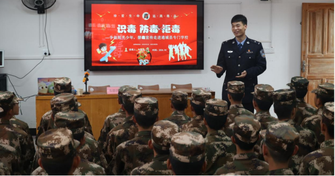 为深入推进青少年毒品预防教育,筑牢校园禁毒防线,4月2日,咸宁市司法局联合通城县司法局走进通城县专门学校,开展“无毒隽城 向阳新生”禁毒法治宣传进校园活动。市强戒所政委邱成府、县司法局党组书记、局长罗岗出席活动,与学校全体师生共同参与了一堂生动而深刻的禁毒法治教育课。