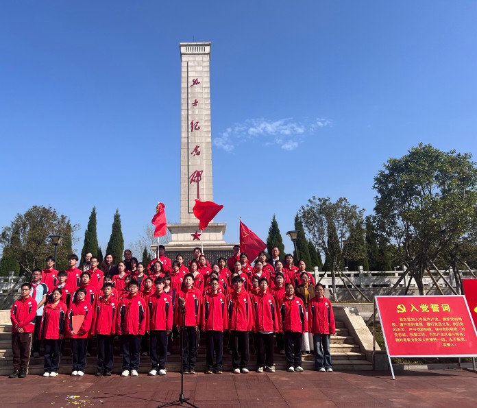 在庄严的氛围里,全体团员重温入团誓词,铿锵有力的誓言回荡在陵园上空,彰显着新时代青少年传承先烈遗志、勇担时代使命的坚定决心。从祭扫英烈、聆听事迹到重温誓词,每一个环节都让师生们接受了一次深刻的红色精神洗礼,大家更加懂得今日幸福生活的来之不易,进一步增强了爱国情感与责任意识。