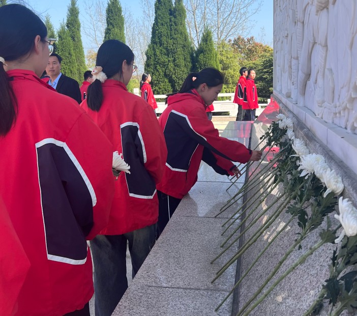 活动现场庄严肃穆,全体师生整齐列队,神情凝重。在讲解员的生动讲述中,同学们静静聆听革命先烈为民族独立、人民解放抛头颅、洒热血的英雄事迹,一段段波澜壮阔的革命历史,一个个感人至深的英雄故事,让大家深刻感受到先烈们坚定的理想信念、无私的奉献精神与炽热的家国情怀。随后,同学们手持亲手制作的小白花,缓缓走到烈士墓碑前,轻轻将白花敬献于碑前,深深鞠躬,以最质朴的方式表达对革命先烈的深切缅怀与崇高敬意。
