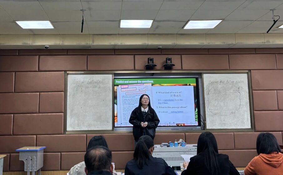 开发区校区章华南老师执教七下 Unit 4 Section B 阅读课,化身“健康侦探”,以猜谜游戏和食物分类导入,带领学生在阅读中剖析不良饮食习惯的危害与对策,并借“You are what you eat”深化认知,强化健康生活引导。