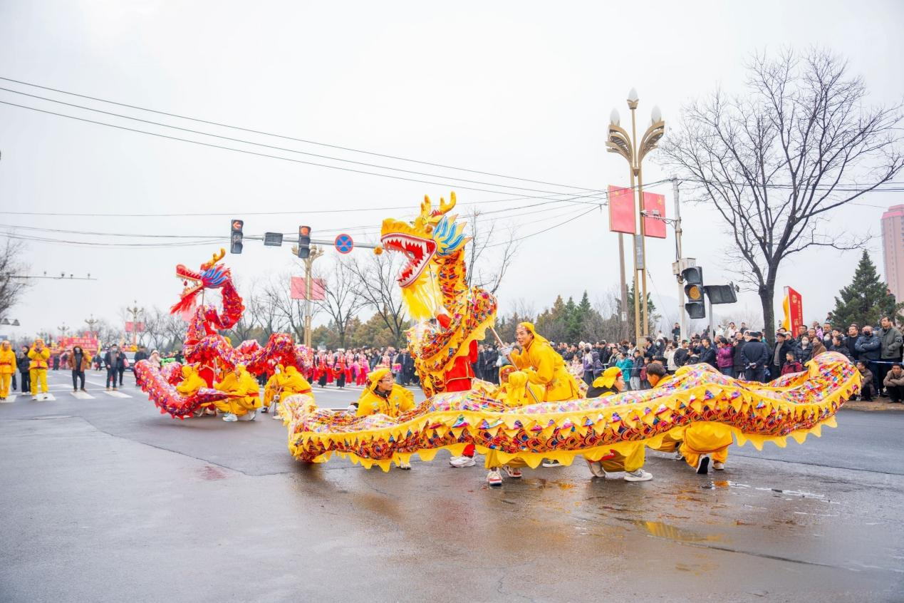 走在最前面的是战鼓队,十几个壮实的后生身着彩衣,红绸缠在鼓槌上,一槌下去,鼓声震得路边的土坯墙都落了细碎的土渣,把黄土高原的豪迈敲得淋漓尽致。紧随其后的舞龙舞狮队,金龙翻卷着身子腾挪跳跃,彩狮踩着鼓点摇头摆尾,每到人群密集处,总要翻几个跟头,引得喝彩声一阵高过一阵。高跷队的汉子们踩着两米多的高跷,扮着三国、神话里的人物,大步流星走得稳稳当当;跑旱船的姑娘坐在彩船里,跟着船桨的节奏晃晃悠悠,活像在水里行船;最热闹的还数赶毛驴,赶毛驴的老汉脸上抹着锅黑,骑着竹篾扎的黑毛驴,故意甩屁股墩,逗得满街的娃娃追着跑。