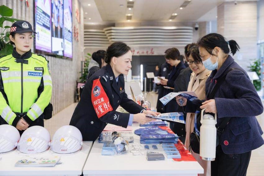 网红交警江雅莉的交通宣传台就设在一楼大厅入口处,人气格外火爆。“您知道头盔怎么戴才真正安全吗?”她拿起头盔现场示范,“下颌带一定要系紧,留一指空隙最合适,这样发生碰撞时才能护住颈椎。”不少骑电动车来办证的市民围着抢答有奖问答,学习交通安全知识。市民赵师傅看完示范后不好意思地说:“以前总觉得戴头盔随便系下就行,今天才知道一直戴错了。”