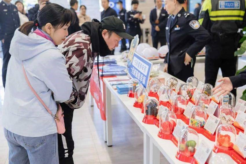 一楼的毒品模型展示区同样让人印象深刻,“奶茶粉”“邮票”等新型伪装毒品,让不少市民停下脚步。“这‘跳跳糖’看着跟超市卖的一样,居然也是毒品?”带着孙女来办证的张奶奶凑上前,指着模型满脸震惊,民警赶紧上前讲解新型毒品的伪装技巧,提醒大家尤其是要看好家里的孩子,别误食陌生人给的东西。