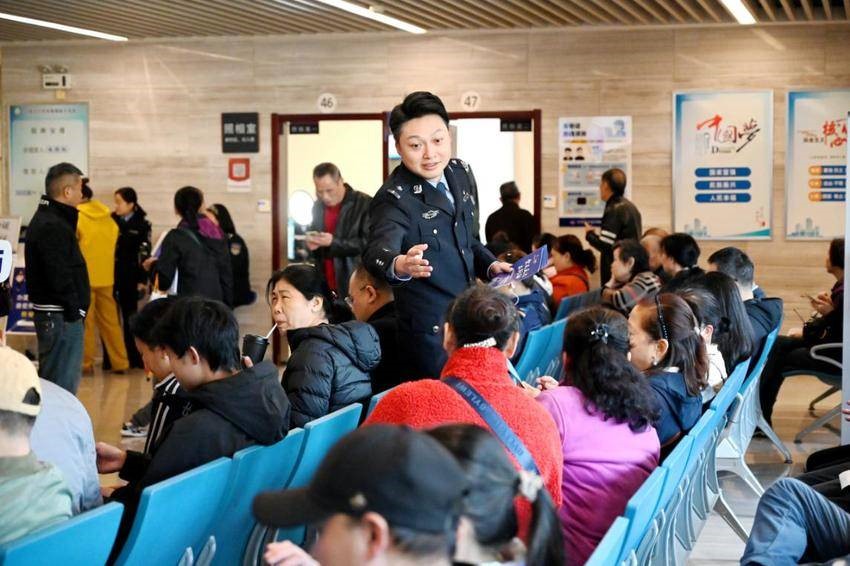 10点半,民警们又拿着宣传资料来到二楼办证区,趁着市民等候叫号的间隙继续讲解安全知识。大家有问有答,原本枯燥的等待时间,变成了实用的“安全学习课”。