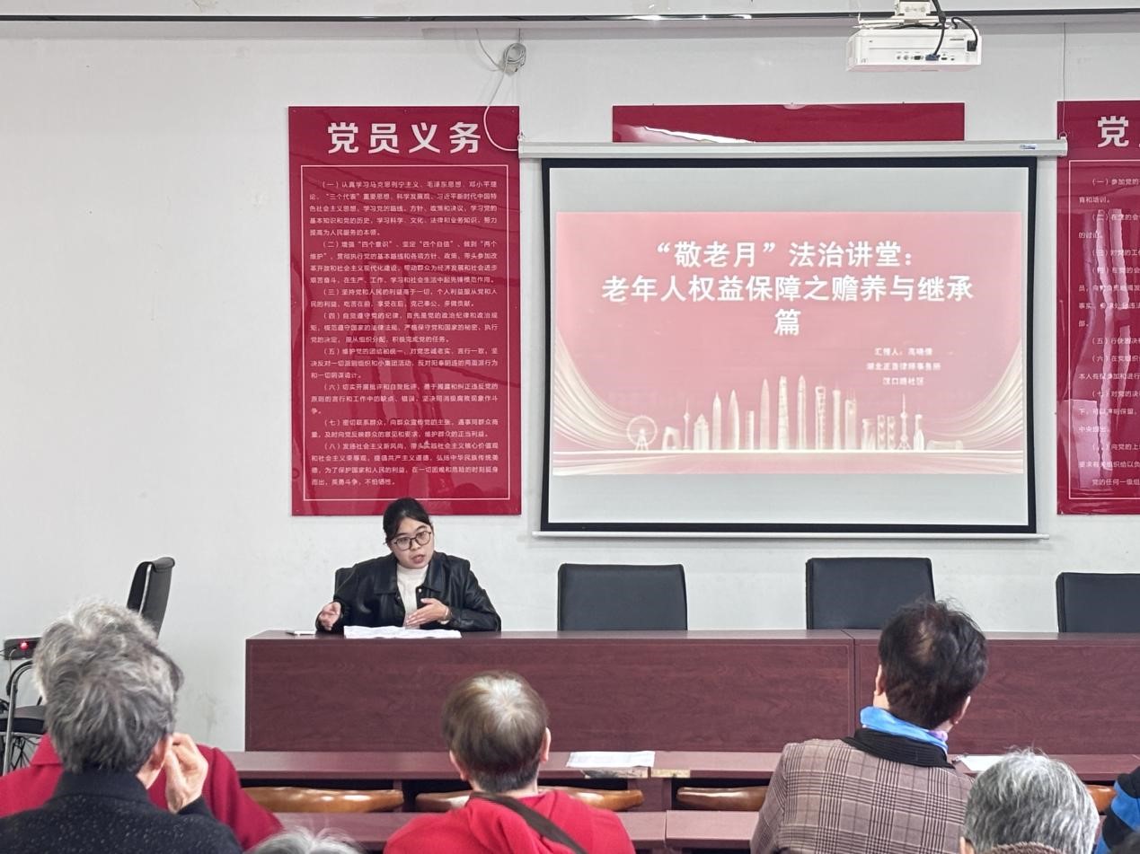 为维护老年人合法权益、弘扬尊老敬老传统美德,“敬老月”期间,老河口市司法局精心组织法律服务进社区活动,邀请湖北正音律师事务所高晓倩律师,走进酂阳街道汉口路社区开展继承赡养法律知识专题讲座,30余名老年人踊跃参与。