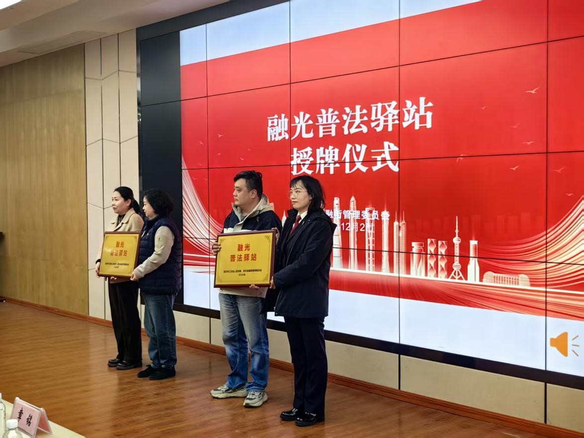 上午9时30分,前进社区二楼活动室内座无虚席,随着激昂的掌声,前进社区与武汉关社区“融光”普法驿站正式授牌亮相,该品牌已构建起“法院+金融”的特色普法体系,以“会商、调研、解纷、建议、普法”五大机制为核心,为居民提供“宣传+调解+诉讼”一站式金融普法服务,成为区域法治宣传的亮眼名片。