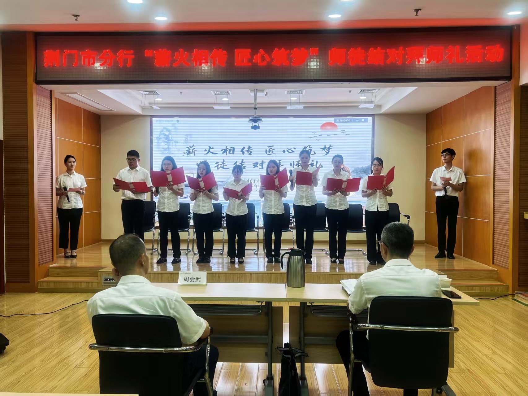 为贯彻落实农发行湖北省分行青年人才培养规划,进一步加强青年人才队伍建设,近日,农发行荆门市分行开展"薪火相传 匠心筑梦"师徒结对拜师礼活动,以庄严仪式缔结师徒情谊,凝聚团队力量。